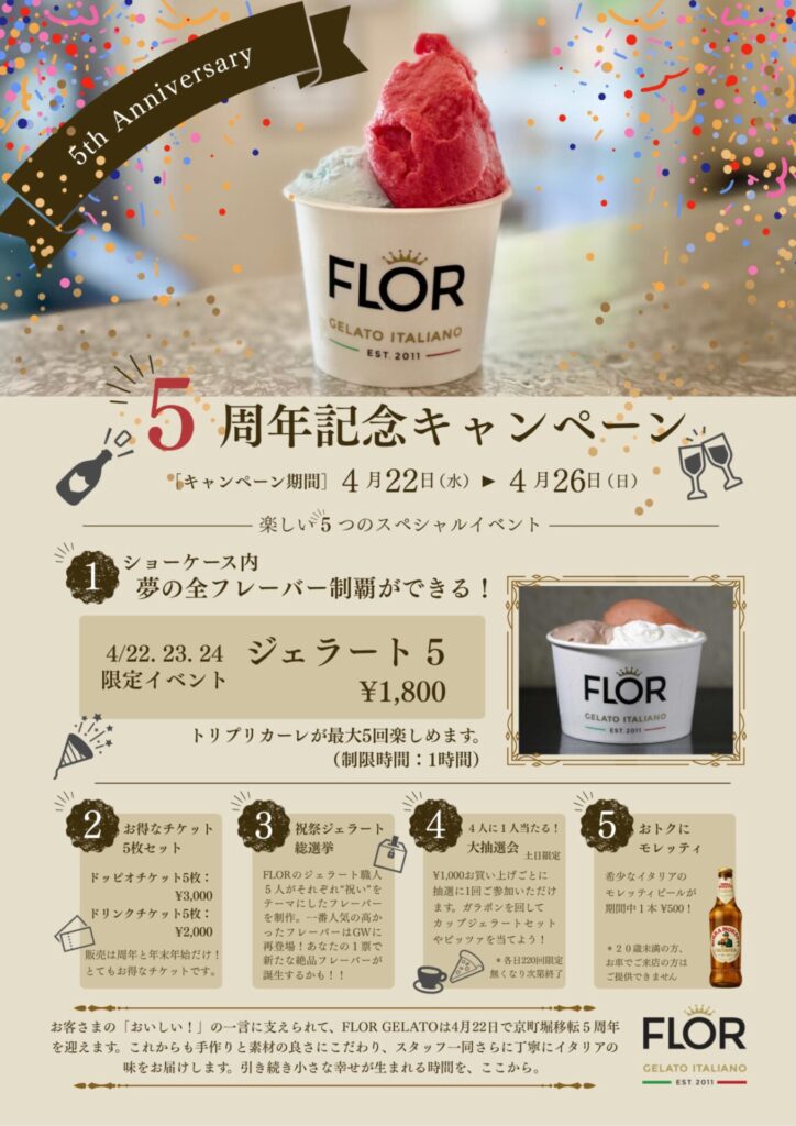 【FLOR GELATO ITALIANO OSAKA|靭公園 5周年】